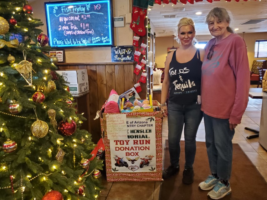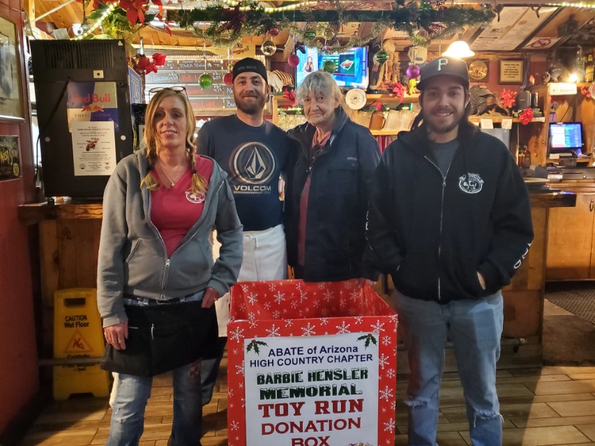 Toy collection boxes were distributed to participating business throughout Rim Country in early November. The boxes were distributed to Punkin Center Bar & Grill in Tonto Basin; Garvin’s RV & Adventures in Rye; The Buffalo Bar & Grill and El Rancho Restaurant in Payson; Tonto Rim Bar & Grill in Star Valley; Double D Restaurant and Bar in Tonto Village; Pine Creek Fudge & Espresso, Pinewood Tavern and the Ponderosa Market in Pine; and Bandit’s Restaurant and Bar in Strawberry.