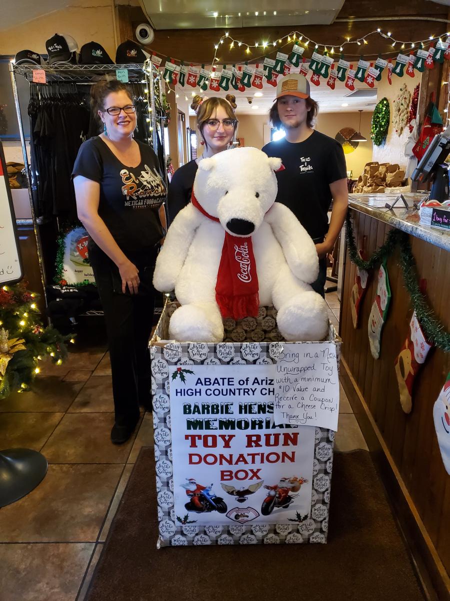 The list of people and organizations that banded together to save Christmas this year is long and, surely, missing some names, but High Country Chapter of ABATE of Arizona (which was also conducting a toy run in Show Low on the same day) would like to thank the following organizations and people without whom none of this could have happened.